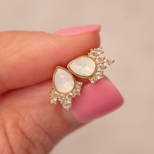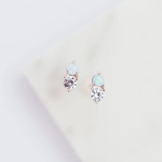 Milky Blue Opal + Cubic Zirconia "Twinkle" Studs