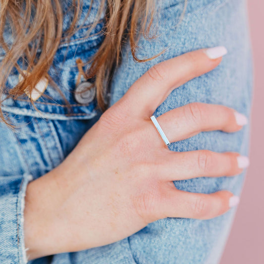 Milky Blue Opal Bar Statement Ring