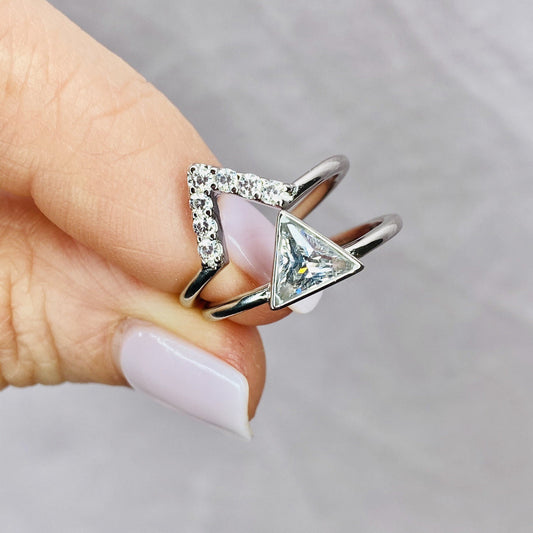 Sterling Silver Clear Cubic Zirconia Triangle Stacking Ring Set