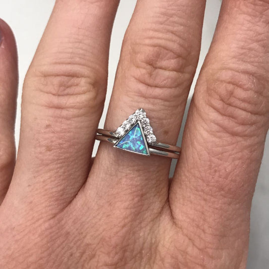 Sterling Silver Blue Opal Triangle Stacking Ring Set