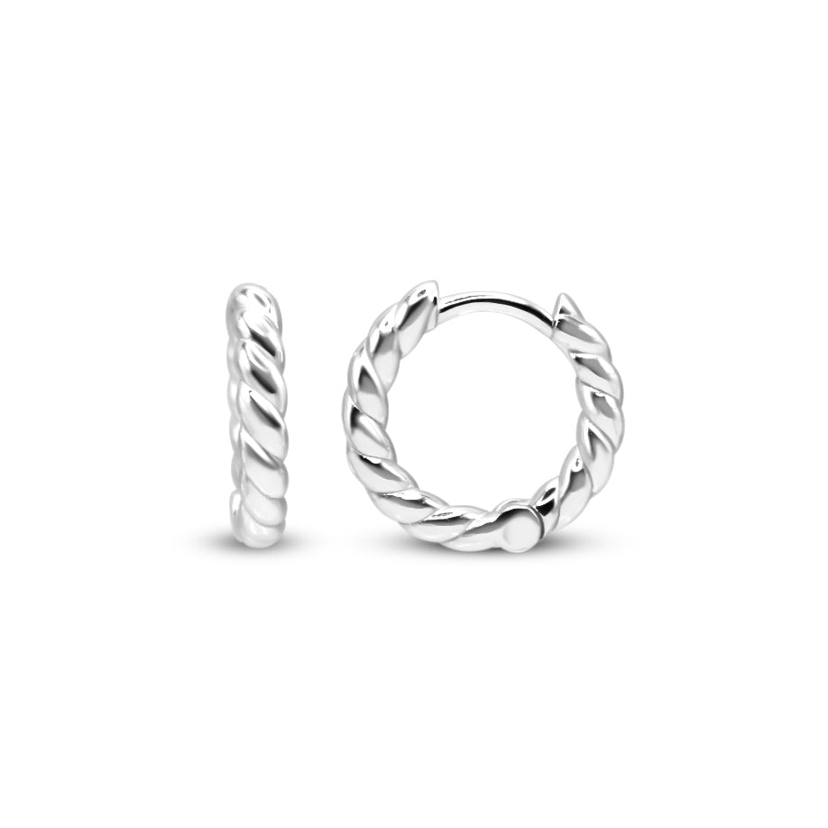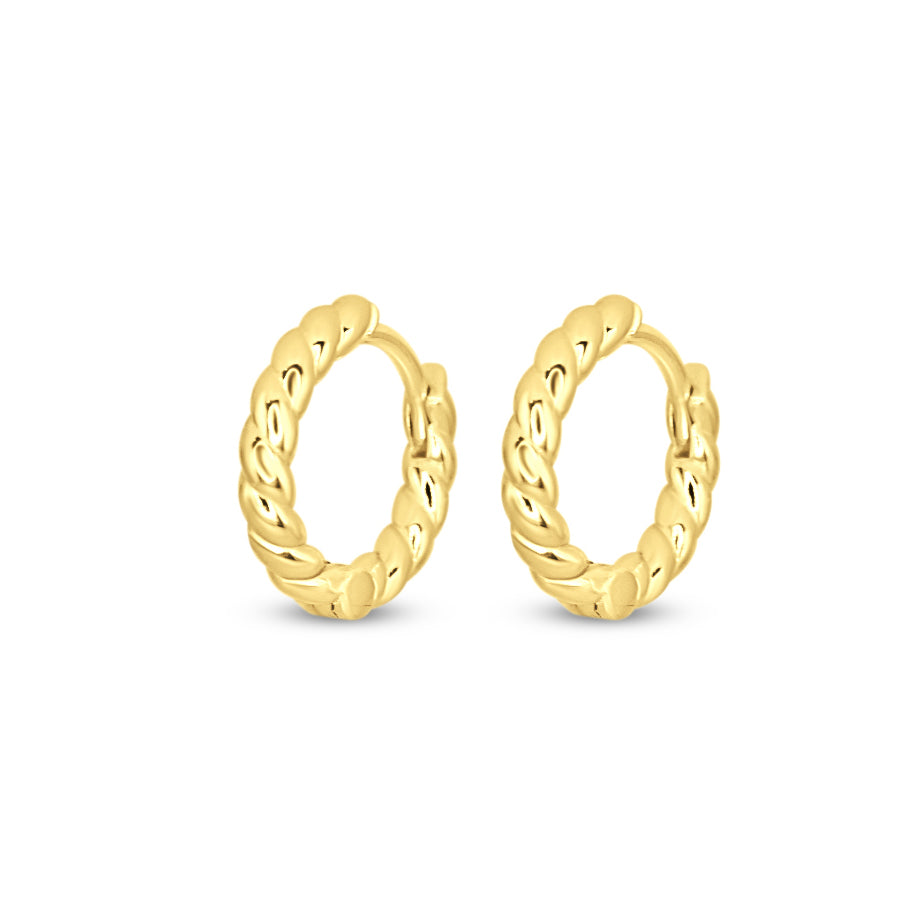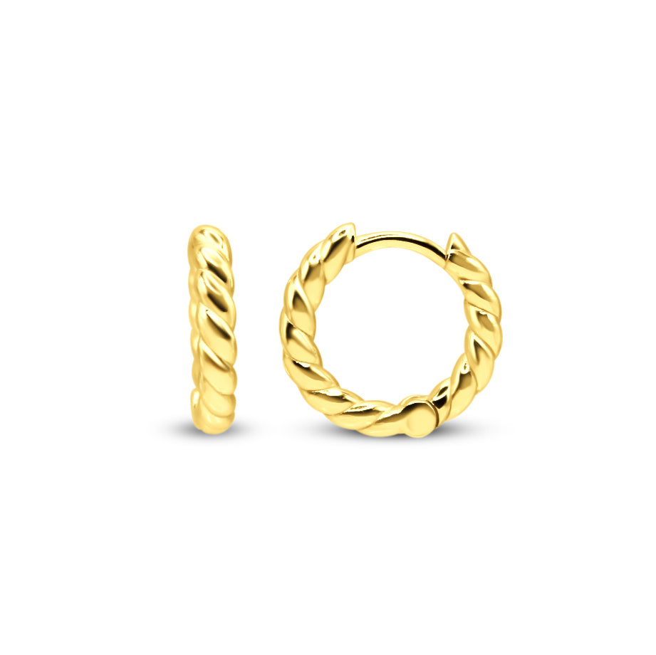 Small, hinged huggie hoop with braided texture. Once you put these hoops on, you're never going to want to take them off, they're perfect for everyday wear and add an effortless, sophisticated touch of elegance and texture to any earring stack!