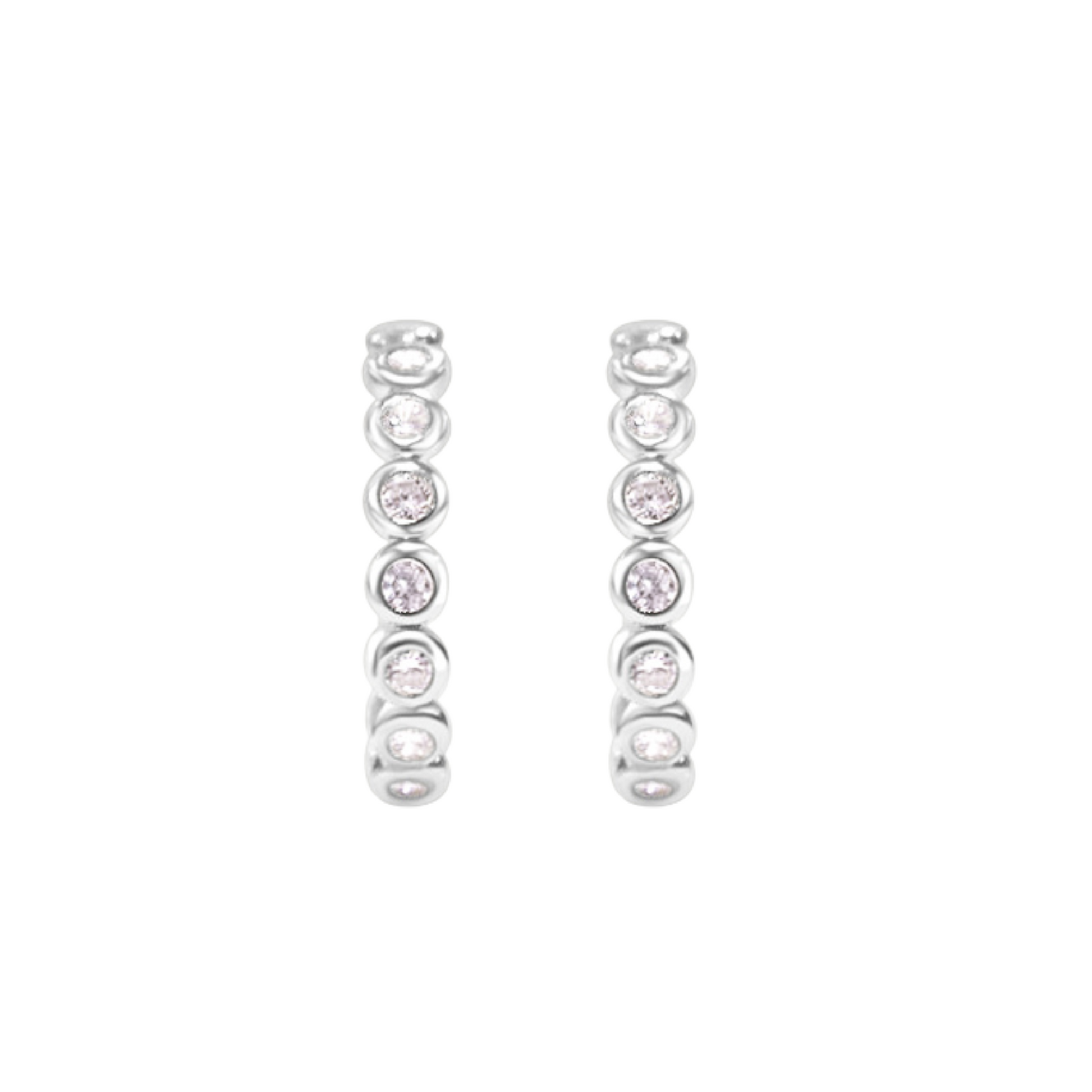 Our sleek Chloe design screams classy and effortlessly elevate your everyday look. These lightweight hoops feature brilliant white bezel set cubic zirconia stones- these earrings literally go with everything and you can wear them dressed up or dressed down. They are truly a must have for the modern day woman.