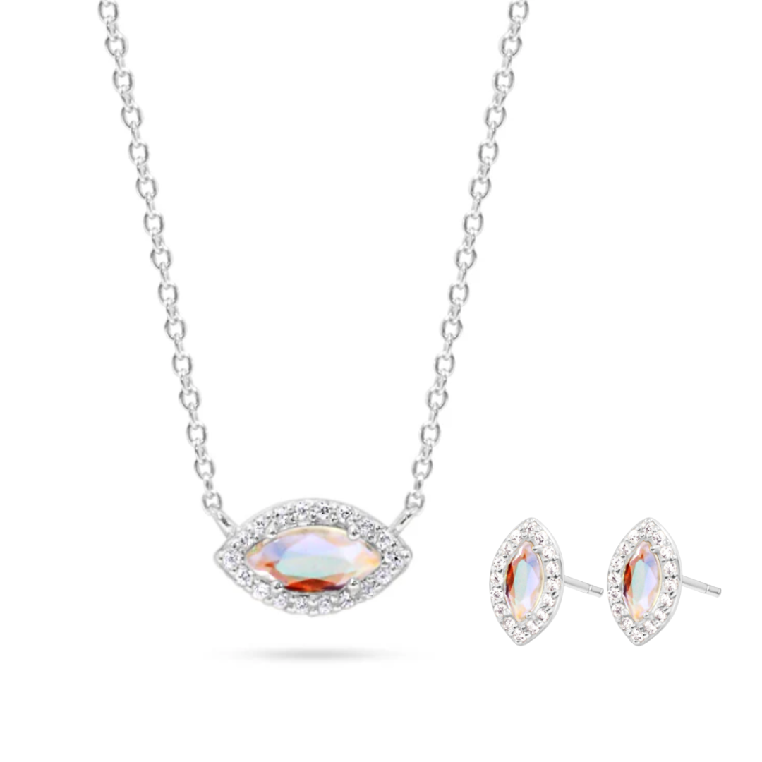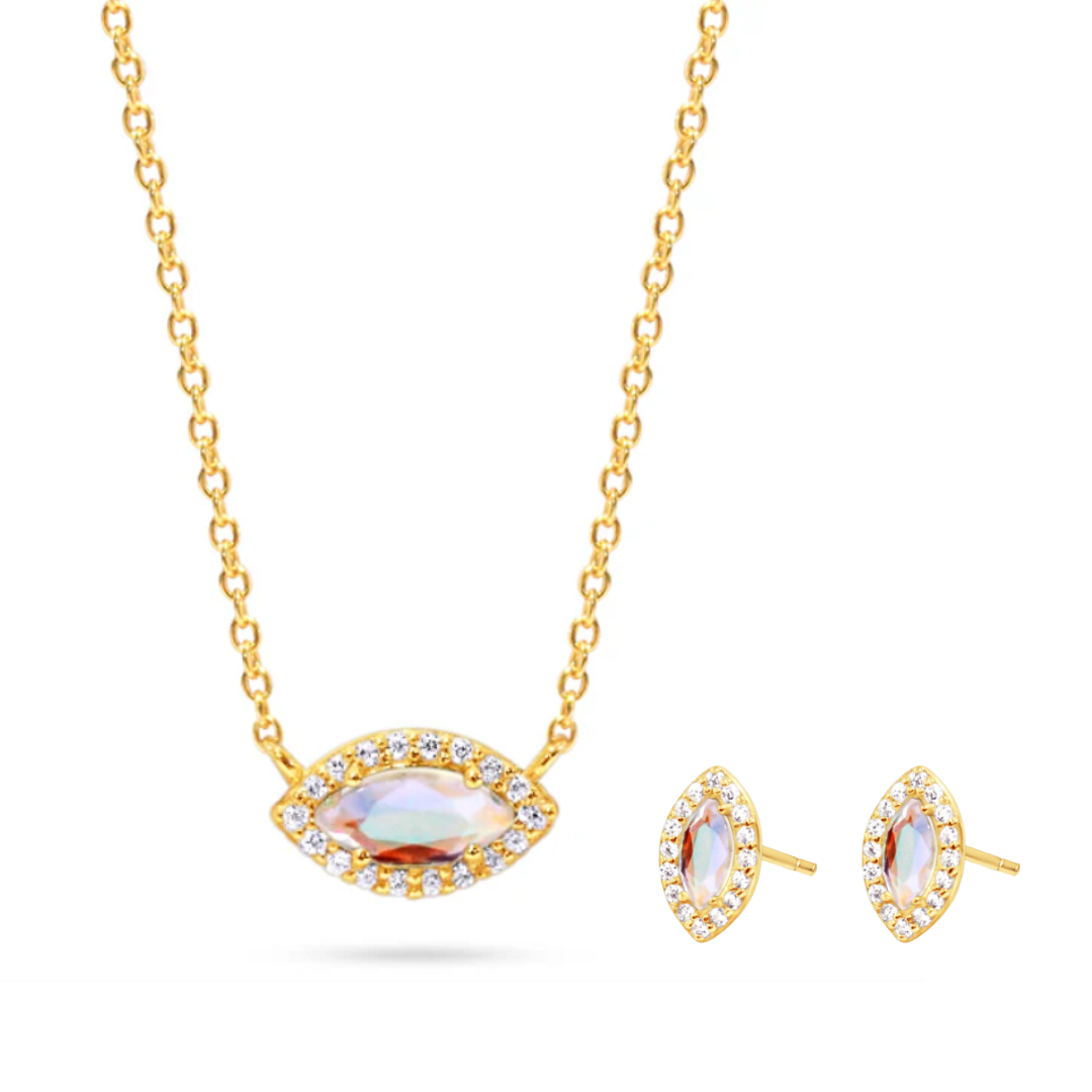 Our Angel Aura Quartz Good Eye Necklace and Good Eye Studs- Bundled and discounted! Your choice of Sterling Silver or 14k Gold plated sterling silver.