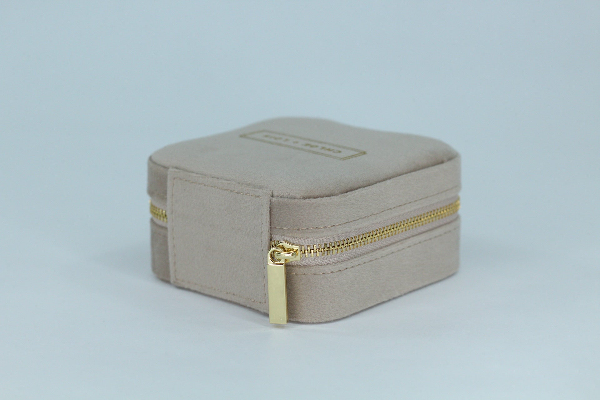 The perfect place to store all of your Chloe + Lois Jewelry. Our luxe velvet jewelry box has ample storage for rings, necklaces and earrings. The zipper closure and interior mirror makes this jewelry box perfect for the woman on the go.