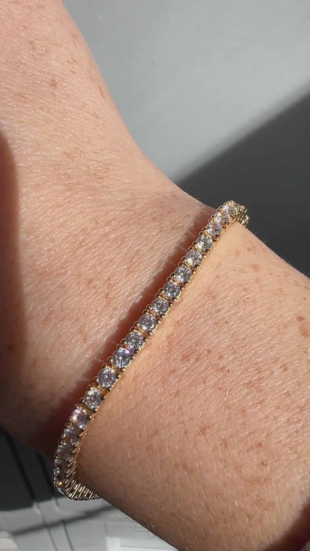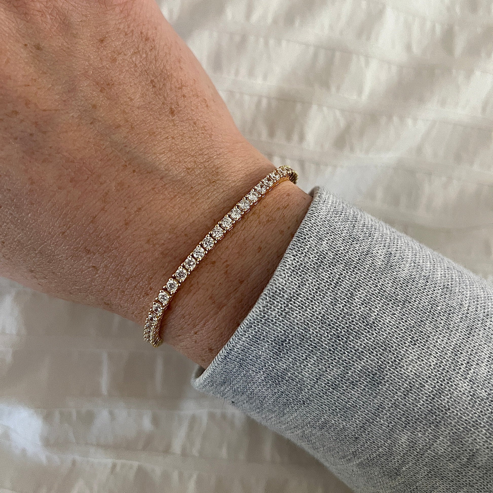 Get ready to turn heads in this stunning bracelet! At Chloe + Lois, we deliver high-end style without the high-end price. The Madeline Tennis Bracelet showcases ultra-faceted white cubic zirconia that sparkles from every angle. Available in sterling silver or 14k gold-plated sterling silver, this elegant piece instantly elevates any outfit. With a secure box clasp closure, it stays perfectly in place, offering both style and practicality. Get ready to love this beautiful bracelet for years to come!