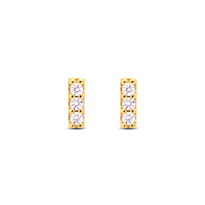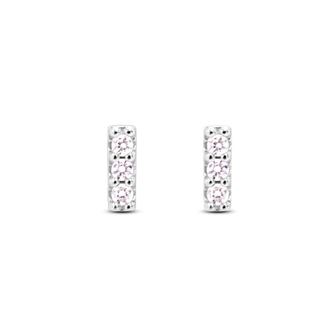 Dainty pave bar studs with white cubic zirconia detail.