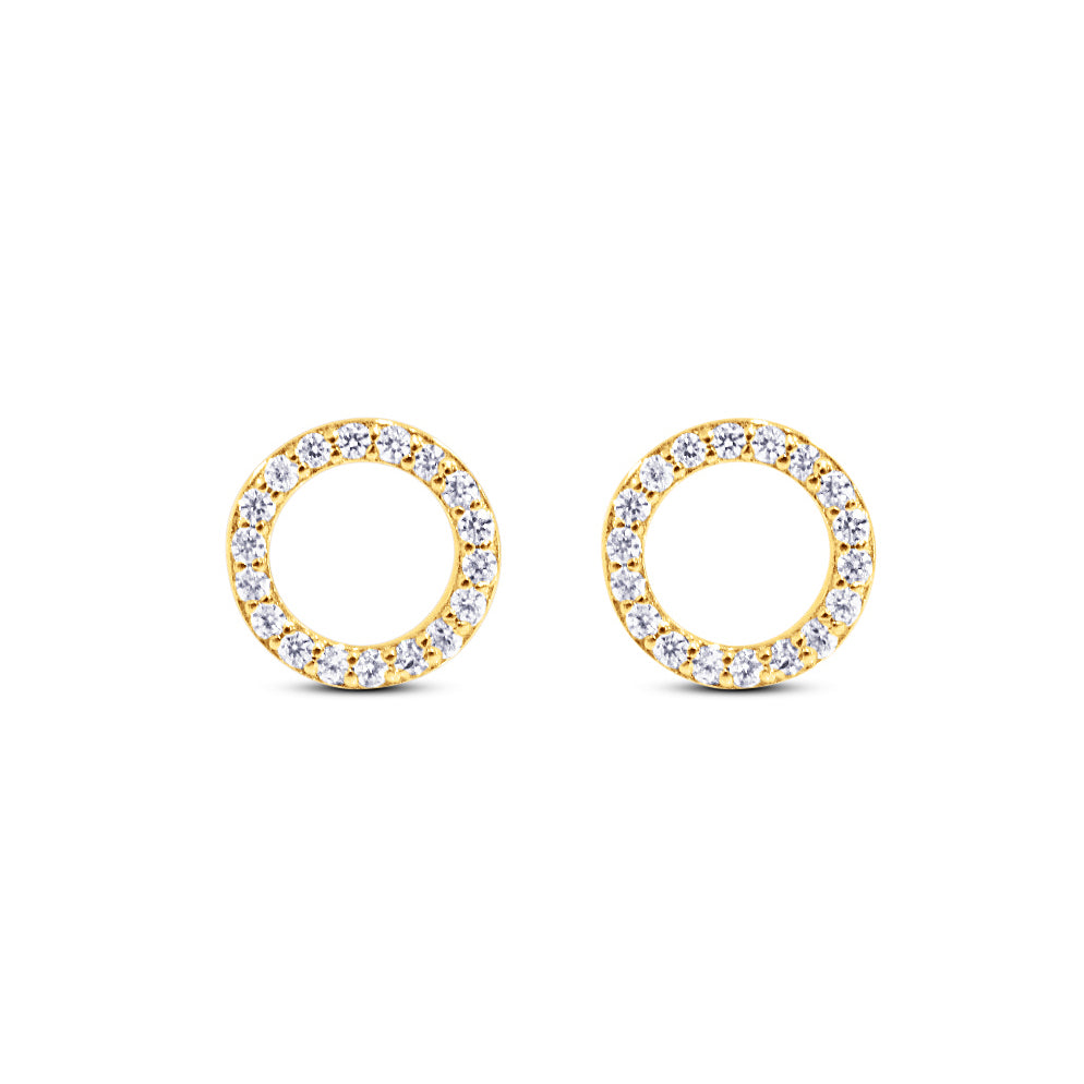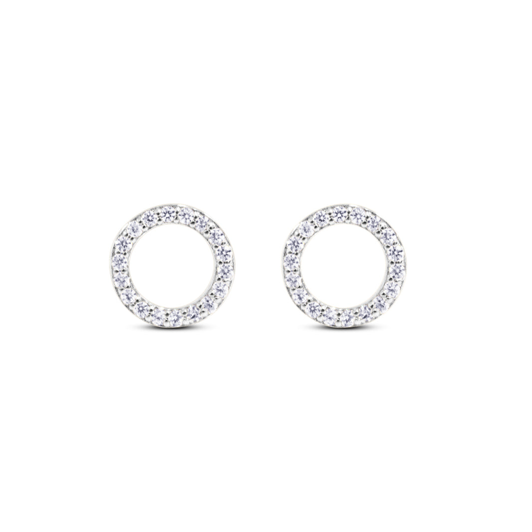 Super cute, dainty pavé open circle stud earrings with white cubic zirconia stones.