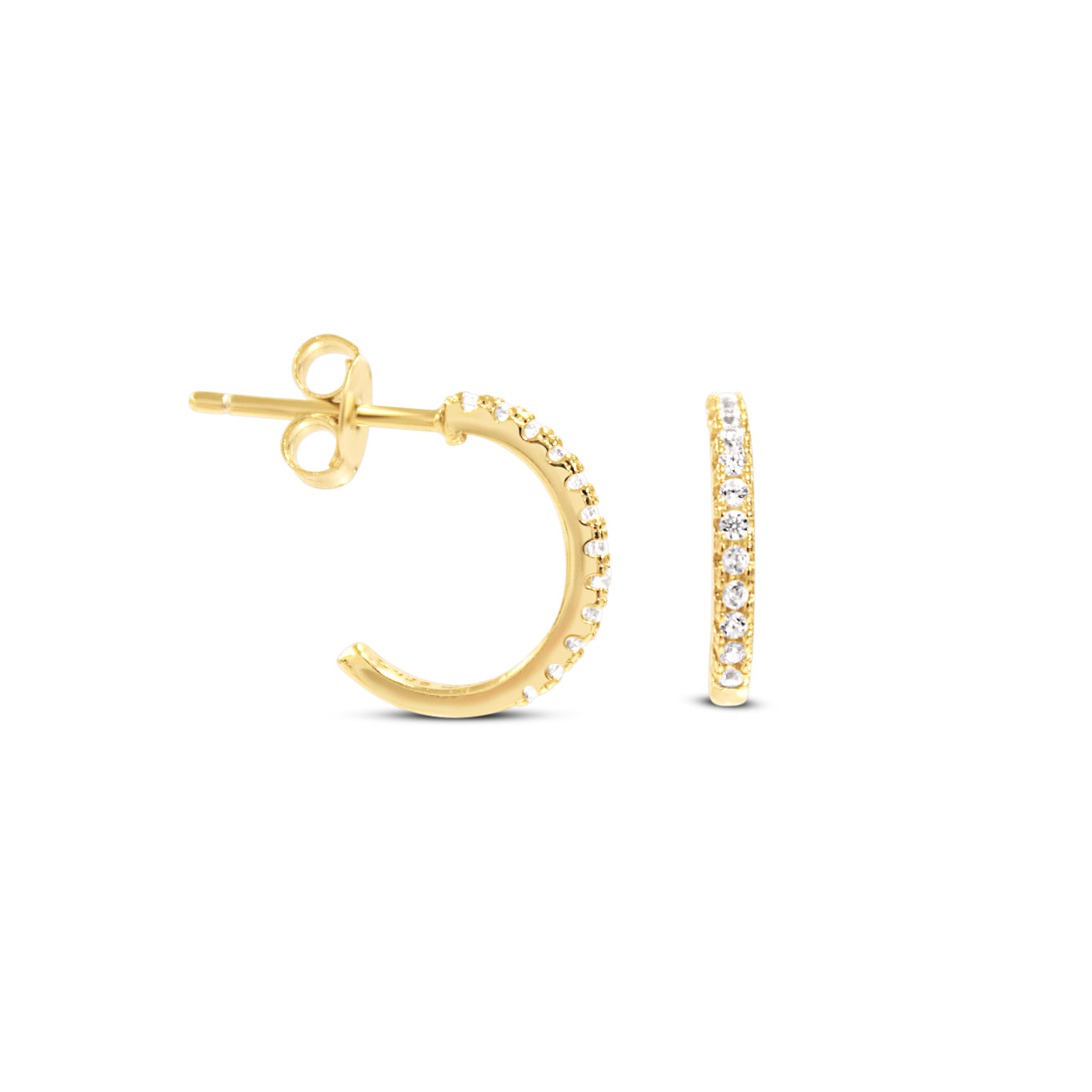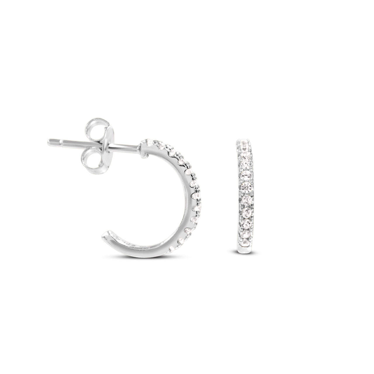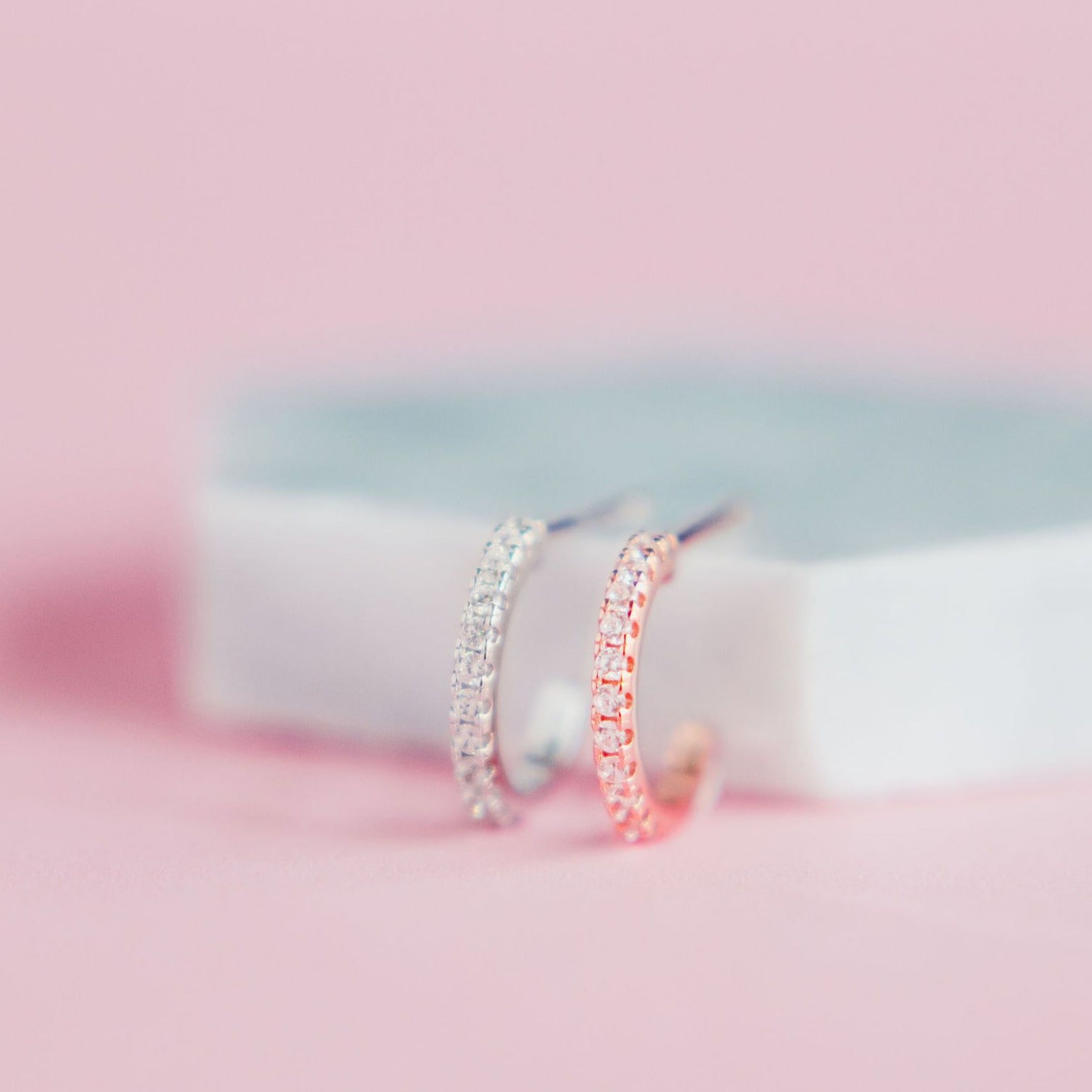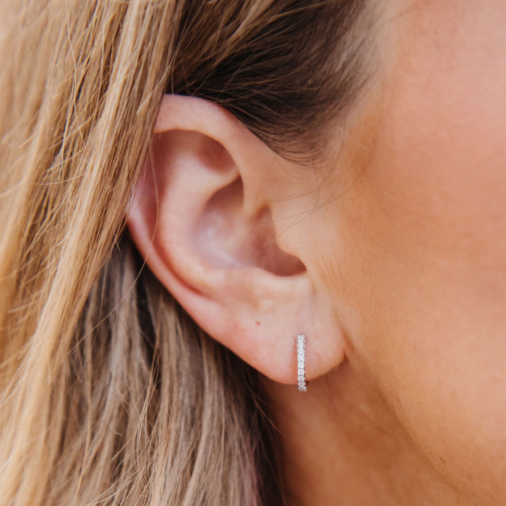 These hoops are an absolute must have- they're a lightweight, ultra sparkly everyday pair of hoops that elevate your look. Skillfully crafted with white cubic zirconia, these small hoop earrings are designed for everyday wear and perfect for pairing with other stud earrings for an effortless yet sophisticated style.